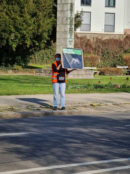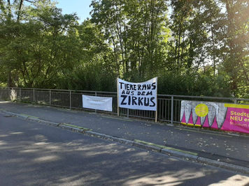 Mehrmals im Jahr veranstalten wir sogenannte Ampelaktionen. Dabei stehen wir an einer gut befahrenen Ampelkreuzung. Sobald die Fußgänger-ampel auf grün schaltet stellen wir uns mit aussagekräftigen Bannern und Plakaten vor die haltenden Autos. Auf diese Weise machen wir auf die Misstände in der Massentierhaltung, auf die quälerischen Tierversuche und weitere Tierschutzthemen aufmerksam.